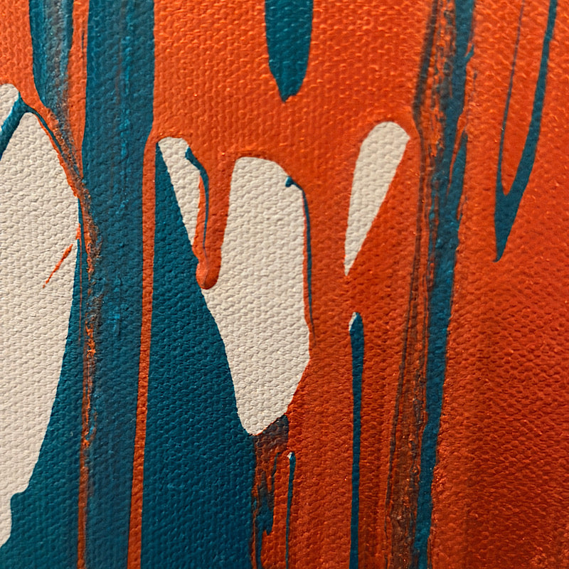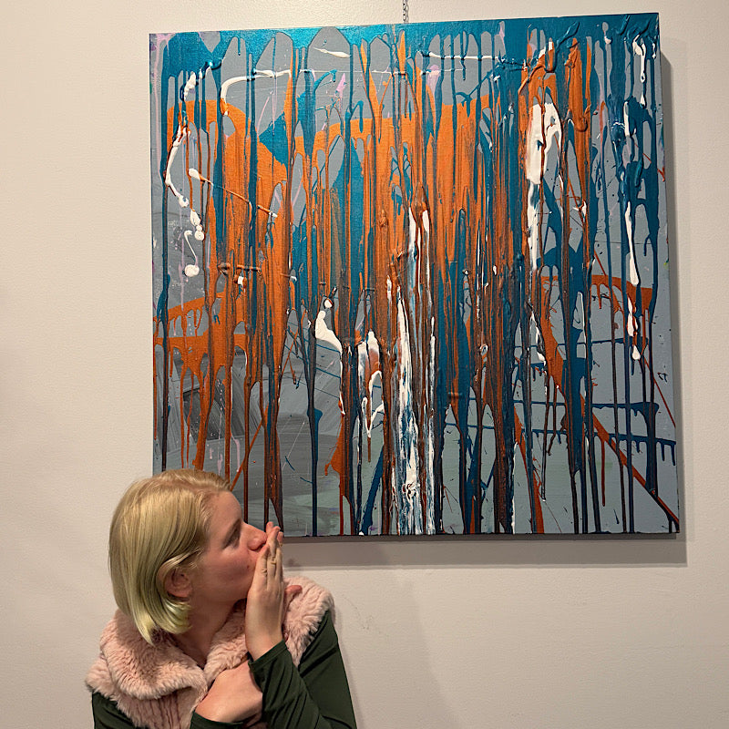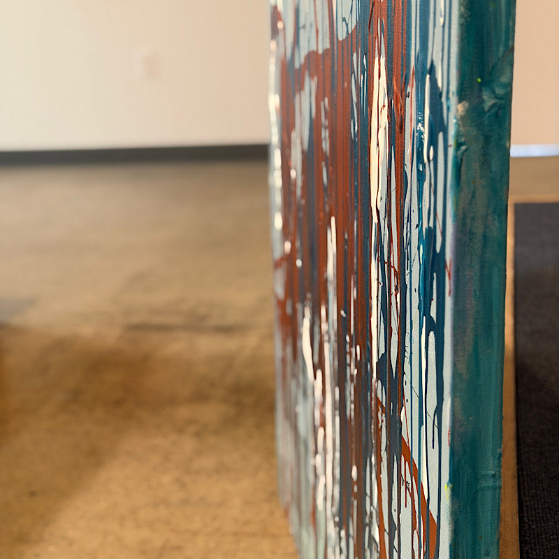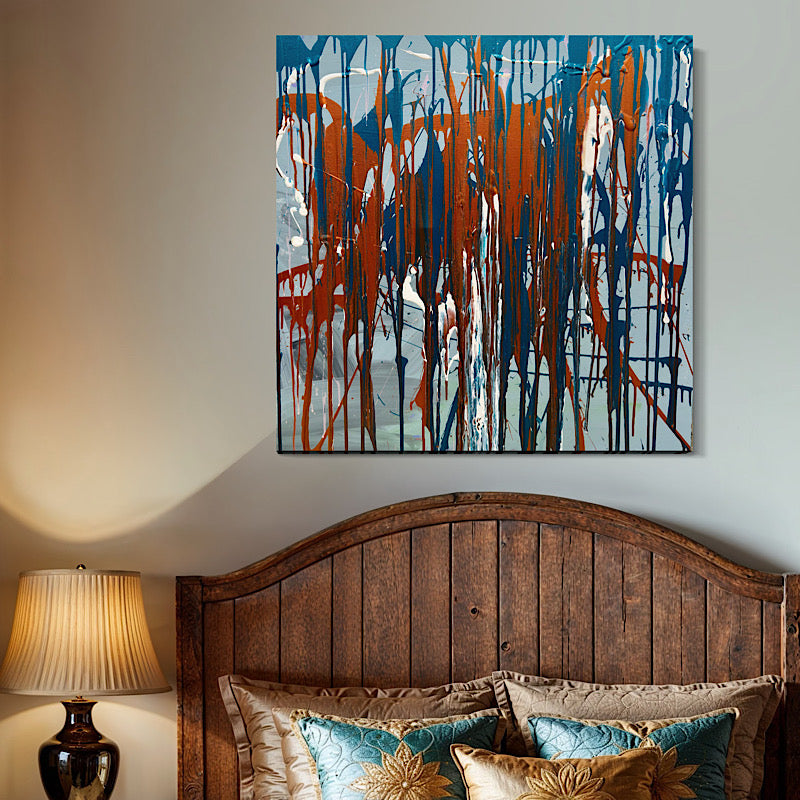 Look at all those drips—orange, blue, white, teal—running down the canvas like they can't stop, like they need to fall. That's what tears do. They come when they need to come, whether we're ready or not.