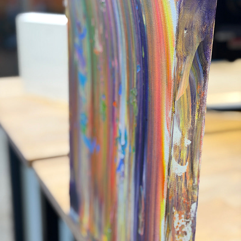 16x12" (40x30cm) - La Bella Vita means "the beautiful life" in Italian. Clara is living proof that you can choose it even when things are hard. Despite her difficulties, her limitations, all the stuff she has to push through every single day, she keeps trying. She doesn't give up. Last week in the studio, Clara came in super happy, singing and jumping around, then she tripped on the carpet and fell hard. Instead of getting up right away, she just lay there on the floor and cried. She told me, "Sometimes I'm just tired of fighting all the things I need to fight every day." Then she started laughing, got herself up, and kept going. That's La Bella Vita right there. It is about choosing joy even when you're exhausted. It's falling down and crying and then laughing at yourself and getting back up anyway. It's deciding that life is beautiful even when it's really, really hard. Let this piece remind you that you can do that too. That choosing beauty doesn't mean pretending struggle doesn't exist. It means living fully anyway.