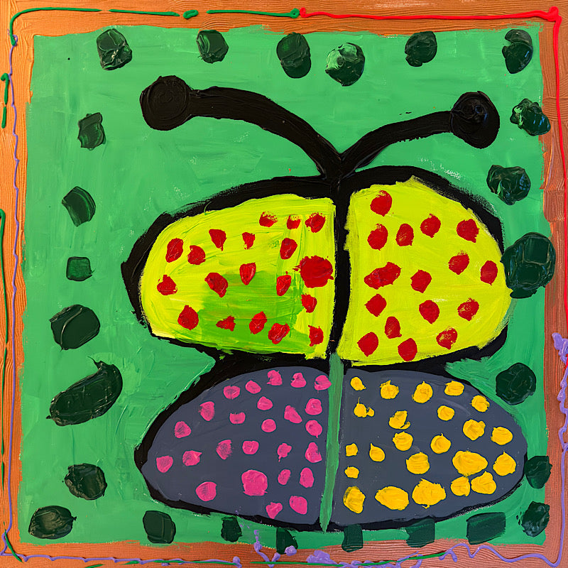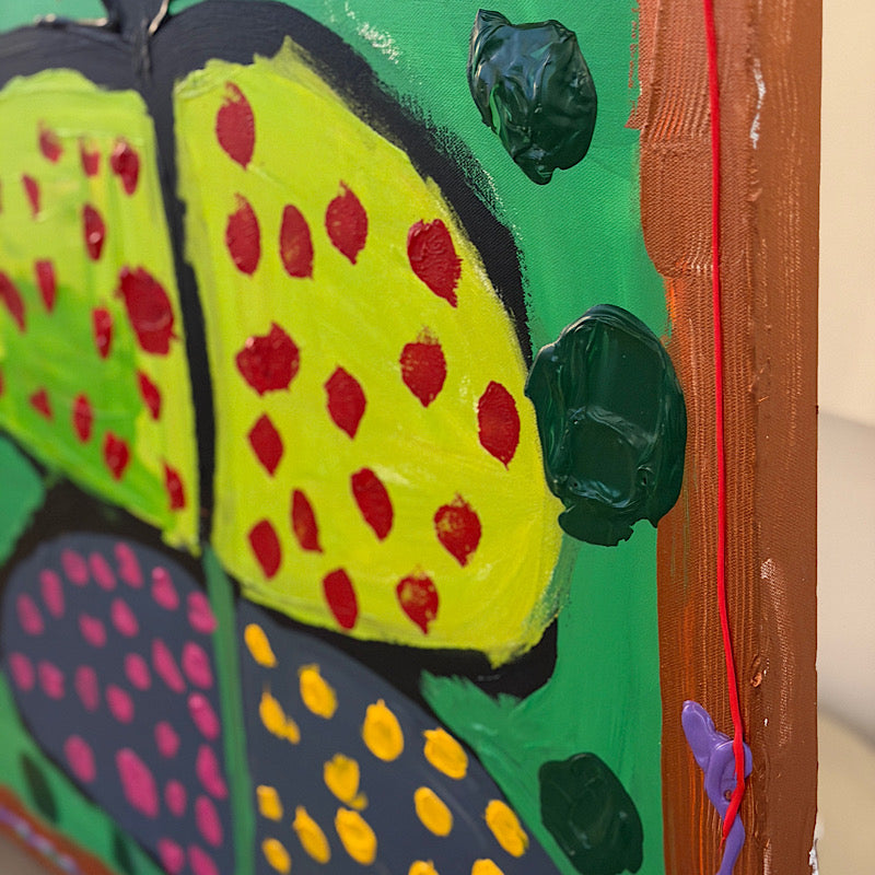 Then one day, you open your wings. These wings are full of texture, full of dots and layers, because every experience left a mark. Nothing was wasted. Every step was part of becoming.