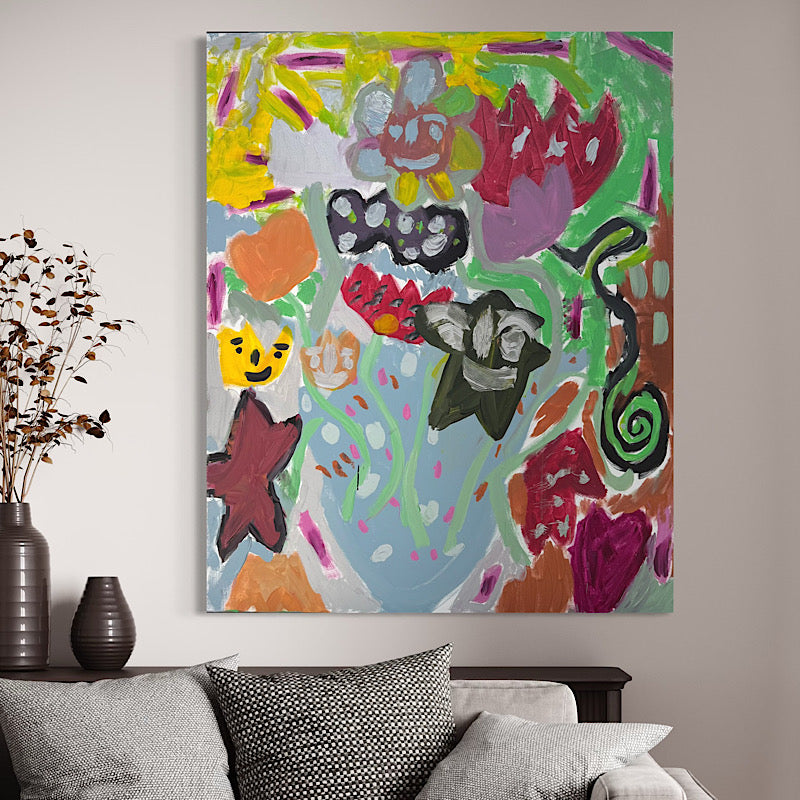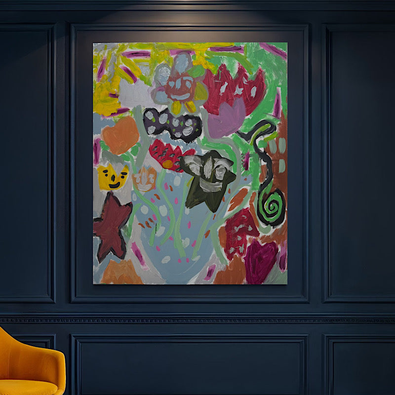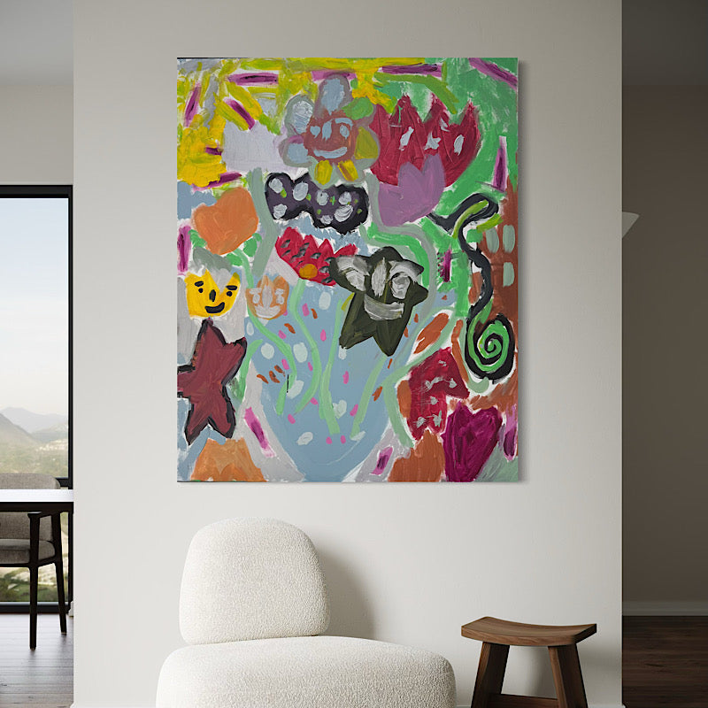 This artwork celebrates exactly that feeling. The idea that we don’t wait for happiness — we create it. Clara created hers in this painting, and you can feel it everywhere on the canvas.
