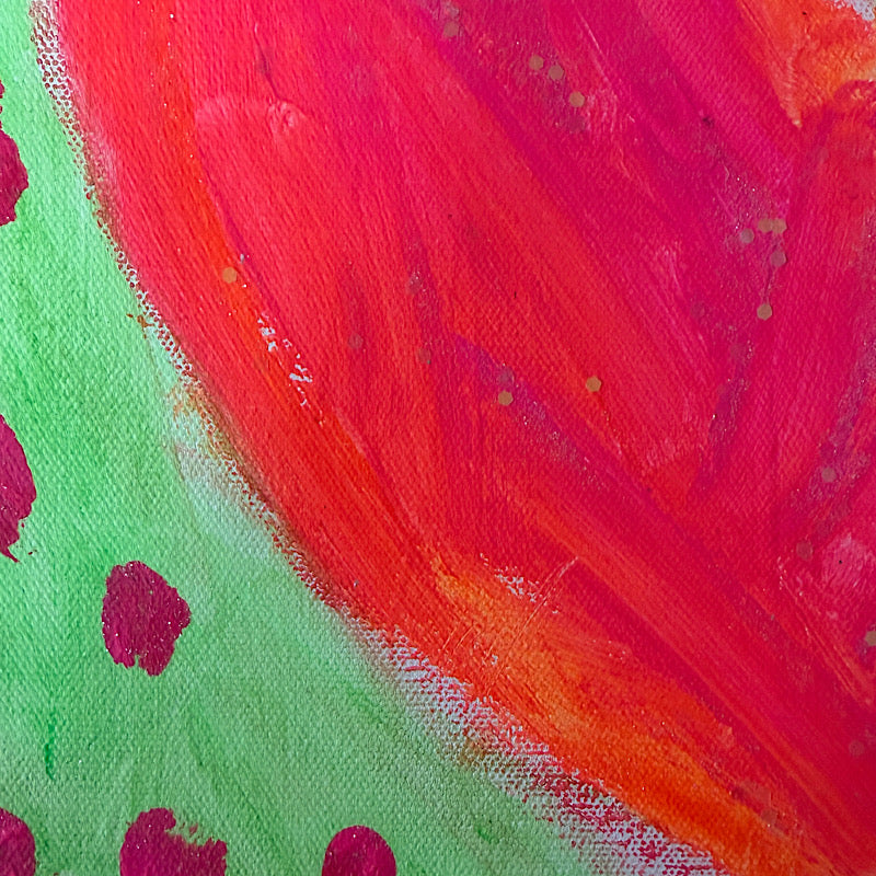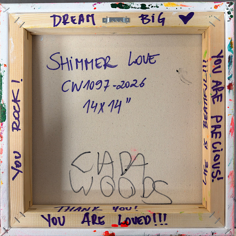 The SHIMMER collection started here! These are smaller originals (12x12” and 14x14”) so more people can bring a little piece of Clara home. Not everyone has the space or the budget for a big painting. These are made for small spaces, cozy corners, or to sit beside other pieces you already love. Each painting gets a soft, delicate layer of glitter, just a touch that catches the light as you walk by and glows quietly.