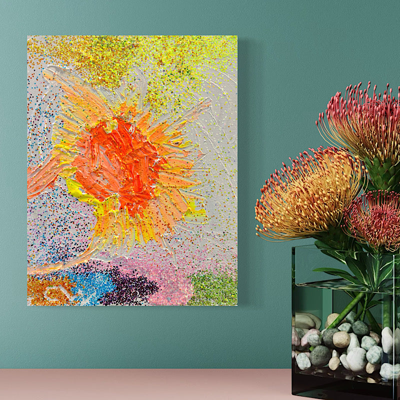 It is a very personal decision, and it depends on your taste. But we advise you to hang it in a place that you can see and live it every day. Clara's paintings bring joy to your life and can flourish emotions you never imagined.