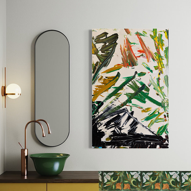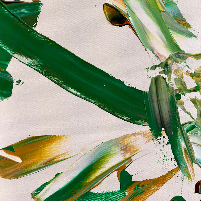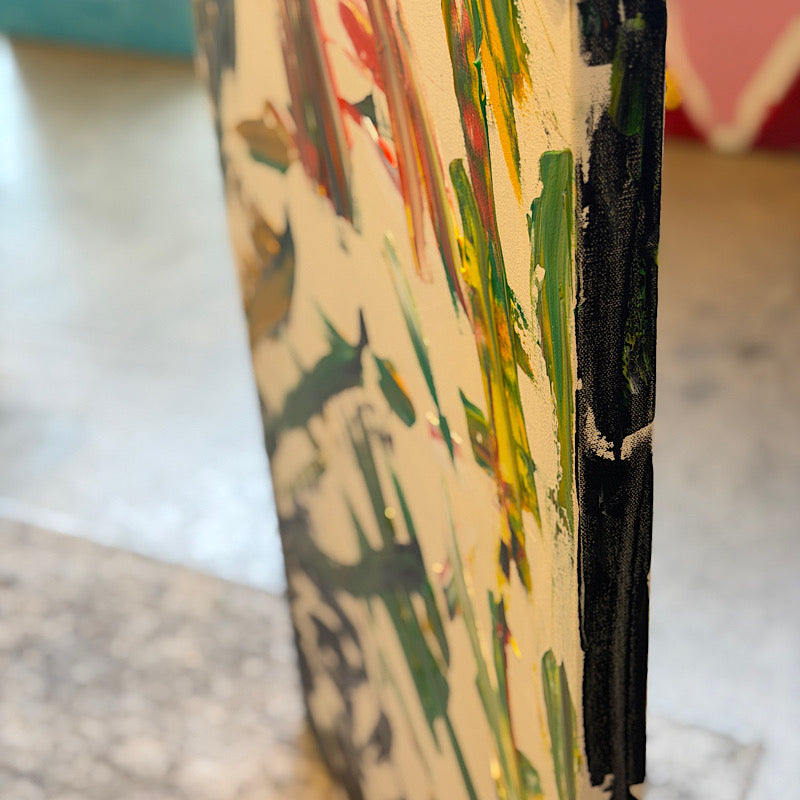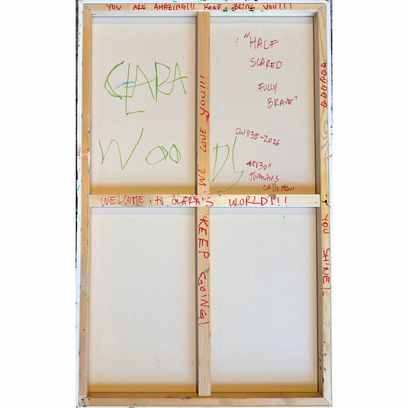 48 x 30" (121.9 x 76.2 cm): Many times, the things we want the most also make us a little afraid. But if it is connected to our dreams, we still have to try. Being brave does not mean you are not scared, it means you take a step anyway. I remember when we decided to change our lives and move to the United States. I was selling my company and applying for the visa, but we hadn't told the kids yet because we were waiting to see if everything would work out. Clara was 12 and somehow she understood just by watching us. She did not say anything. Instead, she made a drawing for the school principal, thanking him for everything and saying goodbye. That was the moment we realized she already knew. She took her time to process her feelings and put them on paper, and I think she was also trying to protect us from more worries. Half scared, fully brave. I think many of us know that feeling, and that is what this painting is about.